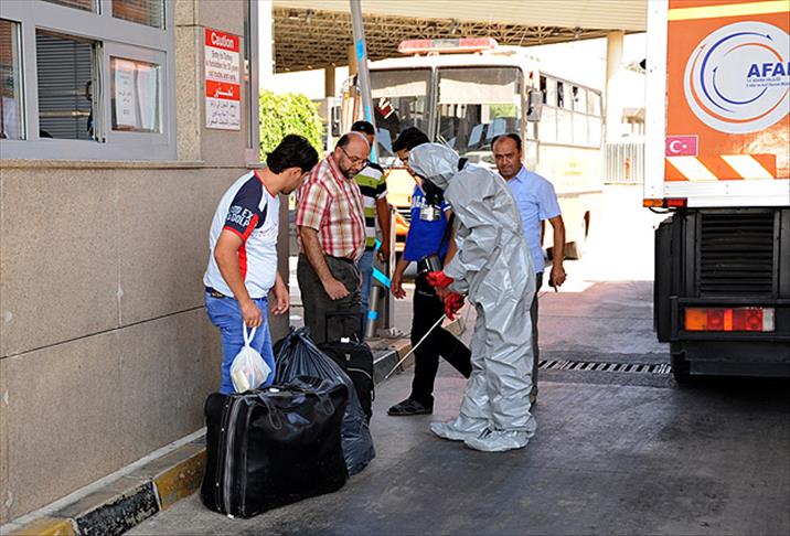 Şanlıurfa'nın Akçakale Gümrük Kapısı'nda da Suriye'den gelenlerden şüpheli olanlara kimyasal ölçüm yapılıyor.
