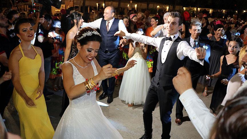 Düğüne, gelinin Çin'den gelen annesi Violeta, babası Jose Pinto ve arkadaşları ile damadın annesi Gönül, babası Ayhan Barlas ve yakınları katıldı.