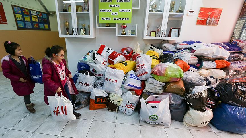 Yardım kampanyasına, bütün öğrencilerin ellerinden geldiği ölçüde katkıda bulunduğunu belirten Cantürk, "Tamamı kullanılmamış eşyaları Halep için topladık. Türk Kızılayı yoluyla Halep'e göndereceğimiz eşyalar arasında soğuk kış şartlarına karşı battaniyeler, kabanlar, botlar, atkılar, eldivenler, çoraplar var. Ayrıca öğrencilerimiz, oradaki çocuklarımızın belki bir nebze yüzleri de gülsün diye onlara oyuncaklar da getirdi." dedi.