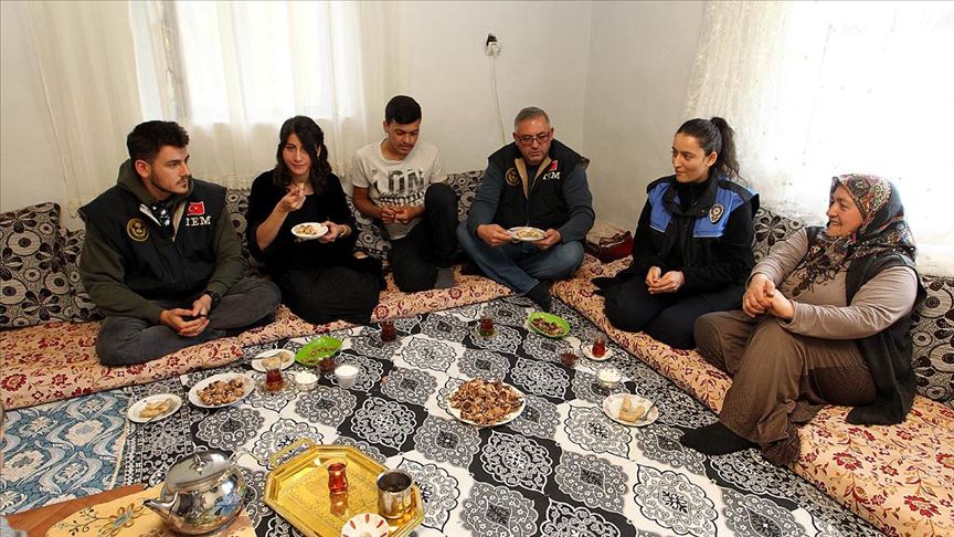 Vatandaşlar da evlerinde ağırladıkları polislere yakın ilgi göstererek, ikramlarda bulunuyor.