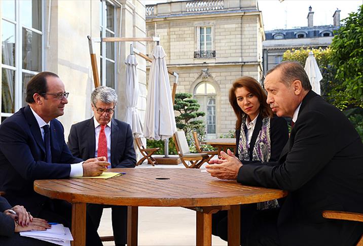 Erdoğan, burada Fransa Cumhurbaşkanı François Hollande ile baş başa ve heyetlerarası görüşmesinin ardından ortak basın toplantısı düzenleyecek.