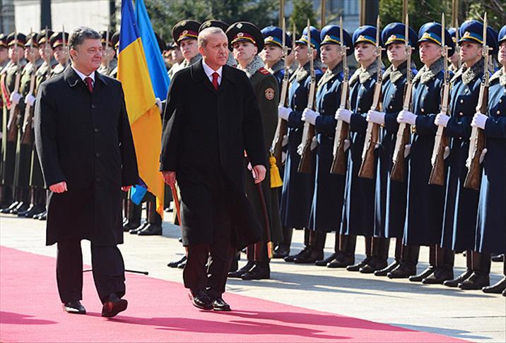 Cumhurbaşkanı Recep Tayyip Erdoğan, Türkiye-Ukrayna Yüksek Düzeyli İşbirliği Konseyinin (YDSK) dördüncü toplantısı vesilesiyle geldiği Ukrayna'nın başkenti Kiev'de, Devlet Başkanı Petro Poroşenko tarafından askeri törenle karşılandı.