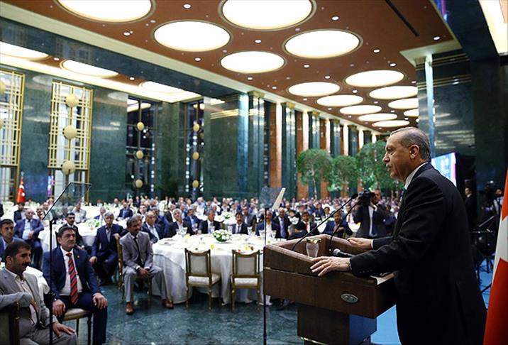 Cumhurbaşkanı Recep Tayyip Erdoğan, Adıyaman, Ardahan, Bingöl, Bitlis, Erzurum, Elazığ, Mardin, Sakarya, Siirt, Şanlıurfa, Kars, Van ve Ankara'da görev yapan 350 muhtar ile iftar yemeğinde bir araya geldi.