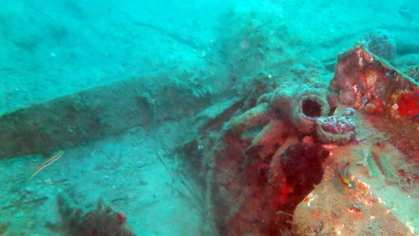 Aydın'ın Kuşadası ilçesi Dilek Yarımadası Büyük Menderes Deltası Milli Parkı açıklarında dalgıçlar, yaklaşık 30 yıl önce düştüğü tahmin edilen tek motorlu ve pervaneli uçağın batığını buldu.