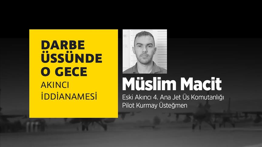 FETÖ'nün darbe girişimi sırasında Akıncı Üssü'ndeki olaylara ilişkin hazırlanan iddianamede şüphelilerden, Akıncı 4. Ana Jet Üssü Komutanlığında görevli Pilot Kurmay Üsteğnen Müslim Macit'in eylemleri ayrıntılarıyla gözler önüne serildi.
