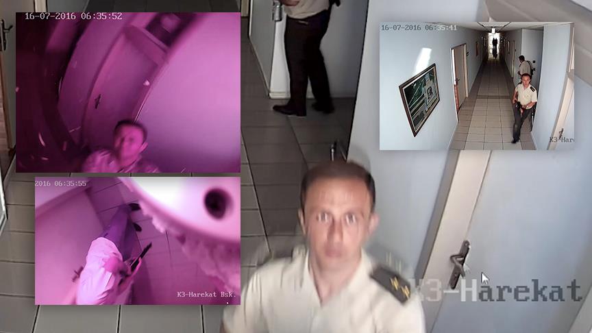 Fetullahçı Terör Örgütü'nün (FETÖ) darbe girişimi sırasında Beştepe Jandarma Genel Komutanlığını işgal eden cuntacıların, başarısız olduklarını anladıklarında karargahın güvenlik kameralarını devre dışı bırakma çabaları, aynı kamera tarafından son ana kadar kaydedildi.