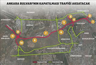 Melih Gökçek, harita üzerinde kapatılacak yerler hakkında bilgi verdi.