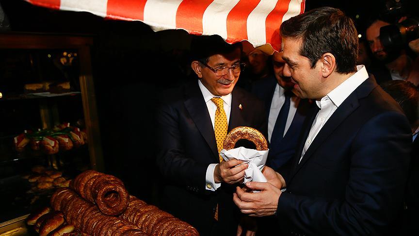 Davutoğlu, Çipras ve beraberindekilere aldığı simitleri ikram etti, ardından Kordonboyu'nda yürüdü.