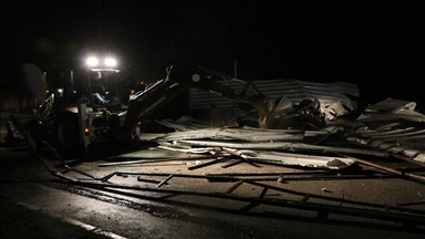 Araçlarda hasara neden olan çatı, vinç yardımıyla kaldırıldı.