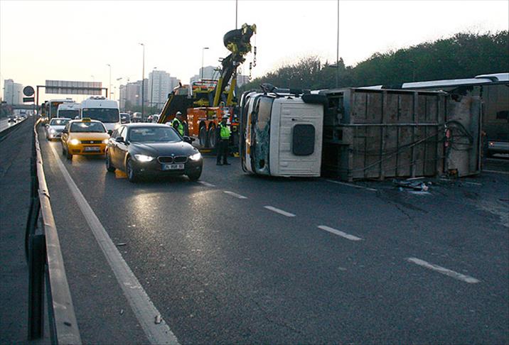 Kamyonun, olay yerine çağrılan vinçler yardımıyla kaldırılmasının ardından trafik normale döndü.