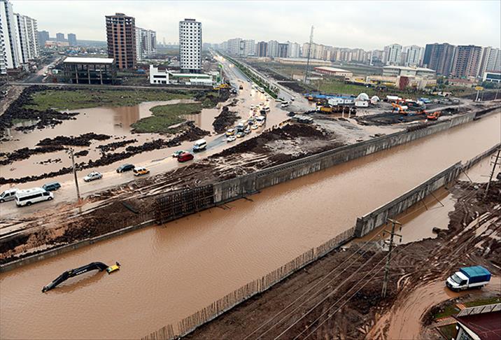 Bu arada Diyarbakır kent merkezinde devam eden köprülü kavşak çalışmalarında kullanılan bir iş makinesi kazılan kavşağın suyla dolması üzerine su içerisinde kaldı. Bazı cadde ve sokaklarda biriken sular nedeniyle başta öğrenciler olmak üzere vatandaşlar büyük sıkıntı yaşarken, yolda kalan araçlar ise çekici yardımıyla sudan çıkarıldı.