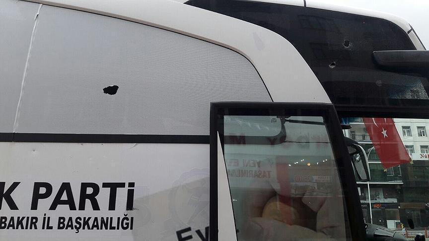 Diyarbakır'da AK Parti'nin kampanya otobüsü taşlı saldırıya uğradı.