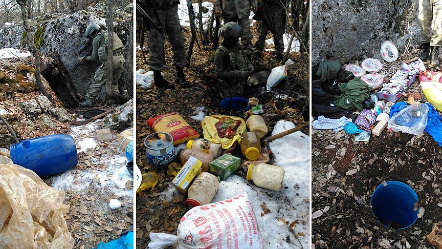 Operasyonda, 2 M-16 piyade tüfeği, 3 M-16 piyade tüfeği şarjörü, 4 AK-47 kaleşnikof piyade tüfeği şarjörü, 120 M-16 piyade tüfeği fişeği, 70 AK-47 kaleşnikof piyade tüfeği fişeği, tabanca şarjörü, 71 cam şişe içinde hazırlanmış konserve, 4 adet 12 kilogramlık mutfak tüpü, 4 piknik tüpü, 11 akü, bin 100 metre kablo ile yaklaşık 450 kilogram muhtelif yiyecek maddesi, çok sayıda mutfak malzemesi ve tıbbi malzeme ele geçirildiği ifade edildi.
