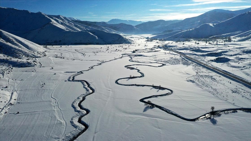 Muş'un Varto ilçesinde dondurucu soğuklar nedeniyle yüzeyinin büyük bölümü buzla kaplanan Hamurpet Gölü ile Bitlis'in Tatvan ilçesindeki menderesler, bembeyaz kar örtüsüyle seyrine doyum olmayan manzaralar ortaya çıkardı.