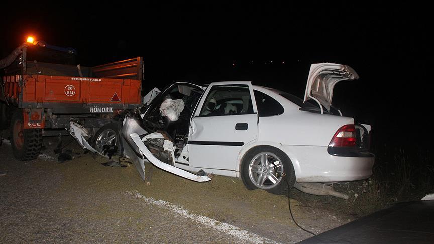 Alınan bilgiye göre, Alaca ilçesine bağlı Kalecikkaya köyündeki bir düğünden dönen ailenin içinde bulunduğu Mehmet Karslı (61) idaresindeki 19 SK 237 plakalı otomobil, Sungurlu-Alaca karayolu 11. kilometrede, Bektaş Kaplan'ın (21) kullandığı 19 LN 460 plakalı traktöre arkadan çarptı.