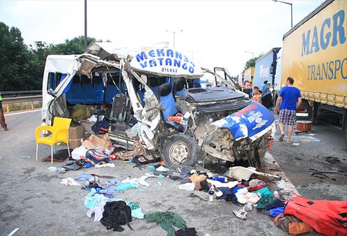 Sapanca ilçesinde minibüsün emniyet şeridinde bekleyen tıra çarpması sonucu 7'si çocuk, 20 kişi yaralandı.
