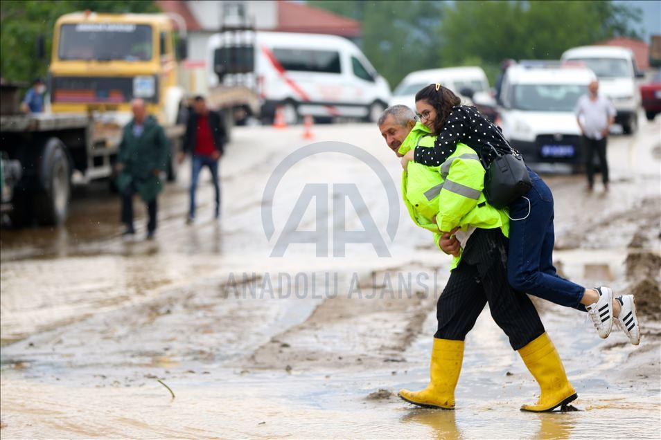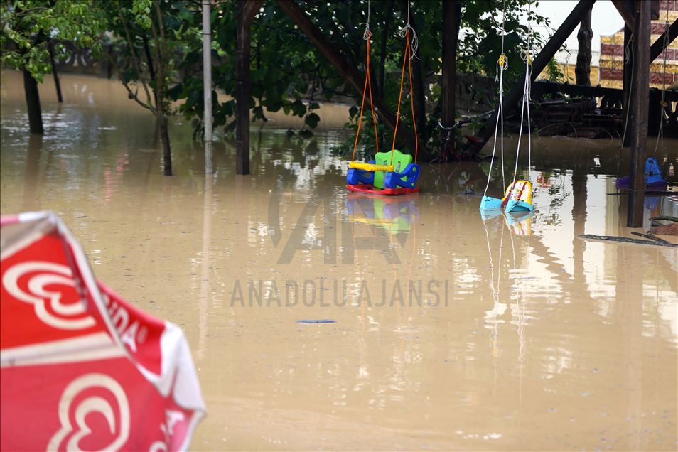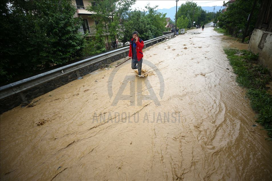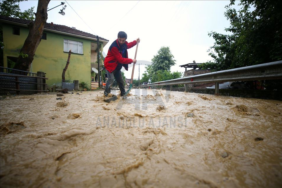 Düzce'nin Gölyaka ilçesinde, şiddetli sağanak nedeniyle su baskınları meydana geldi. ( Ömer Ürer - Anadolu Ajansı )