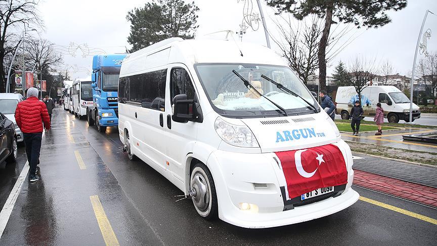 Düzce'de Türk Silah Kuvvetlerince (TSK) Afrin bölgesinde sürüdürülen Zeytin Dalı Harekatı'na destek amacıyla tır, yolcu otobüsleri ve otomobillerden oluşan konvoy, kent merkezinde tur attı.