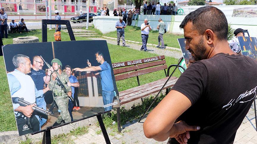 15 Temmuz Demokratik Gençlik Derneği ve AA Edirne Bölge Müdürlüğü iş birliğinde Selimiye Meydanı Fatih Sultan Mehmet heykeli çevresinde açılan sergide, AA muhabirlerinin FETÖ'nün hain darbe girişiminde bulunduğu gün ve sonrasında çektiği 40 fotoğraf yer alıyor.