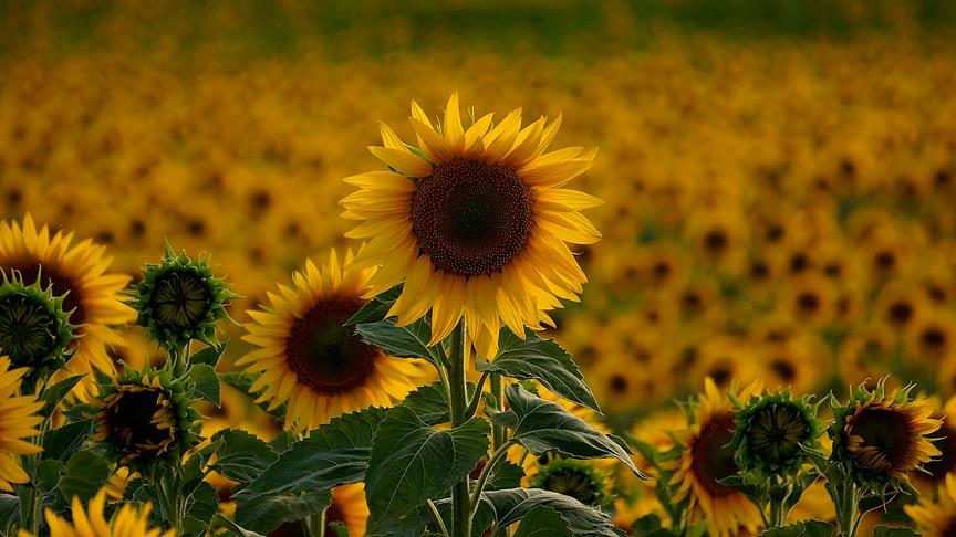 Türkiye'nin ayçiçeği ihtiyacının dörtte birini karşılayan Edirne'de ekilen ayçiçek tohumları çiçek açmaya başladı.