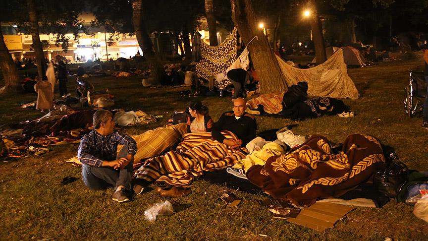 Sığınmacılardan yaklaşık 200 kadarı da kent merkezindeki İlhan Koman Parkı'nda bekliyor.