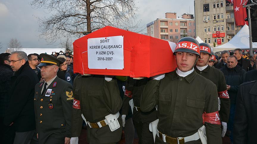 Fırat Kalkanı Harekatı kapsamında Suriye'nin kuzeyindeki El Bab'ın Kabr el Mukri bölgesinde terör örgütü DEAŞ mensuplarıyla yaşanan çatışmada şehit düşen Uzman Çavuş Kerem Çalışkancı, memleketi Ordu'nun Fatsa ilçesinde son yolculuğuna uğurlandı.