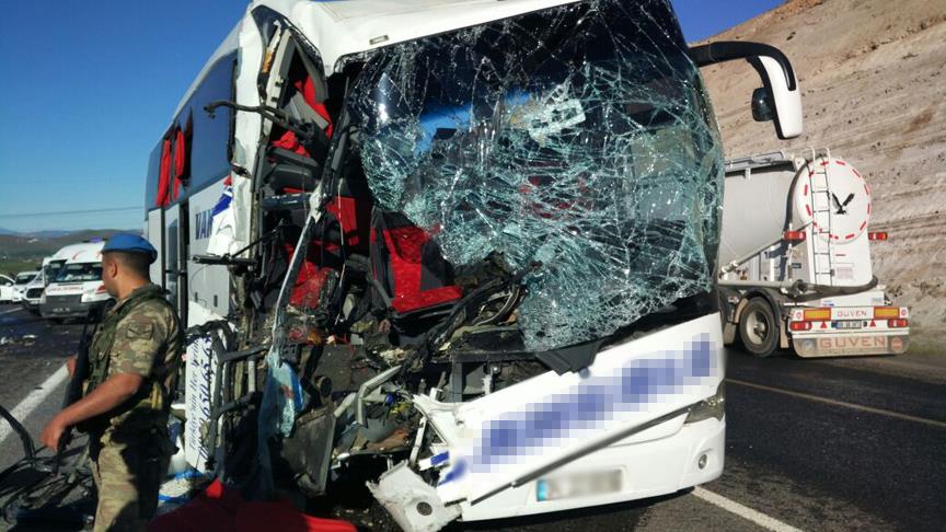 Alınan bilgiye göre, Bursa'dan Van'a giden Zafer Üstün idaresindeki 34 ZZ 6516 plakalı yolcu otobüsü, Elazığ-Bingöl karayolu Karakoçan ilçesi Bulgurcuk köyü yakınlarında önünde seyreden Zafer Apalak'ın kullandığı 33 FH 380 plakalı demir yüklü tıra arkadan çarptı.