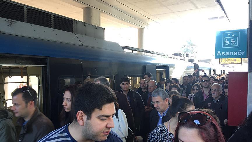 Trenden inen yolcular otobüslerle işlerine yetişmeye çalışmak isteyince duraklarda izdiham oluştu.
