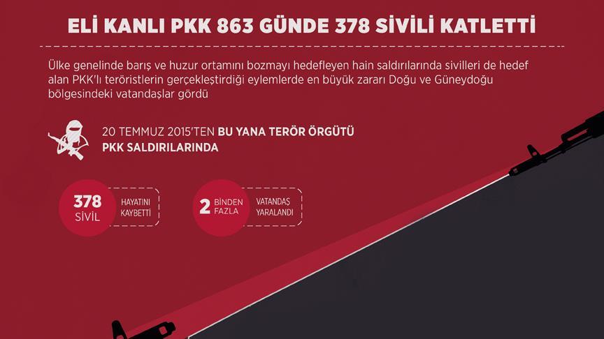 AA muhabirinin derlediği bilgiye göre, 20 Temmuz 2015 ile 29 Kasım 2017 tarihlerini kapsayan 863 günde terör örgütü mensuplarınca düzenlenen saldırılarda kaymakam, öğretmen, çoban, muhtar, siyasetçi ve işçilerin de aralarında bulunduğu 378 sivil yaşamını yitirdi. Bu saldırılarda 2 binden fazla vatandaş yaralandı.