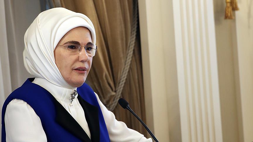 "Allah, ülkemizi ve bölgemizi terör örgütlerinin kötü emellerinden muhafaza eylesin. Mehmetçiğimizi muzaffer eylesin inşallah" ifadesini kullanan Emine Erdoğan, "Devlet ve millet olarak, bir yandan böylesine önemli gündemlerle meşgulken, bir yandan da ülkemizin geleceğini ilmek ilmek örme sorumluluğu taşıyoruz." diye konuştu.
