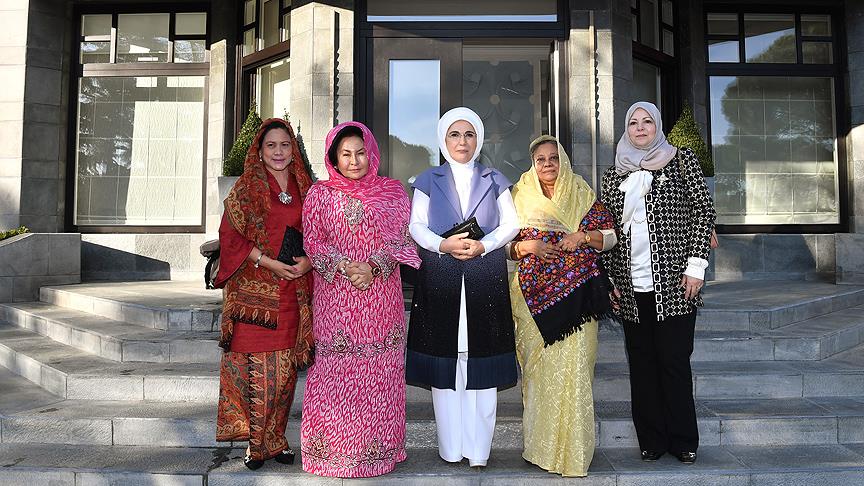Cumhurbaşkanı Recep Tayyip Erdoğan'ın eşi Emine Erdoğan, İslam İşbirliği Teşkilatı (İİT) Olağanüstü Zirvesi kapsamında Türkiye'ye gelen devlet başkanlarının eşleriyle bir araya geldi.