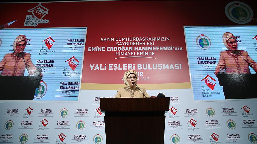 Gönül Elçileri Projesi kapsamında Kaya İzmir Termal Otel'de düzenlenen "Vali Eşleri Buluşması"na katılan Emine Erdoğan, bunun bir gönül buluşması olduğunu belirtti.