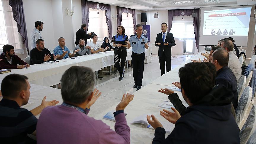 Eğitimle ilgili bilgi veren Asayiş Eğitim Merkezi Şube Müdürü Özer Bilgehan, işitme engelli vatandaşlara daha iyi hizmet verebilmek için 81 ilde görevli personele bu yıl içerisinde ilk defa Türk işaret dili eğitimi verildiğini söyledi.