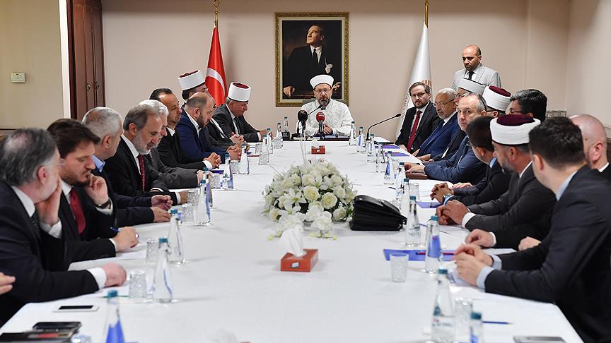 Diyanet İşleri Başkanı Ali Erbaş, Diyanet İşleri Başkanlığında, Cumhurbaşkanlığı Göreve Başlama Töreni'ne katılmak için gelen Müslüman dini liderleri kabul etti.