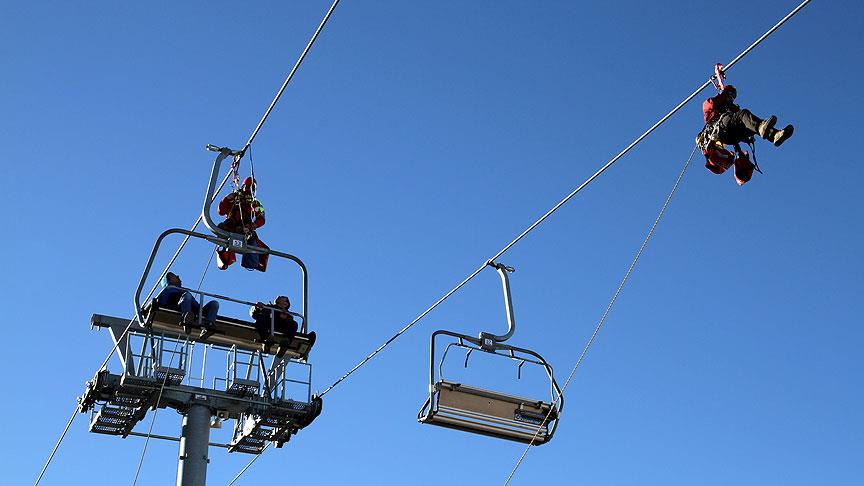 Kayseri Büyükşehir Belediyesi Erciyes AŞ'nin arama, kurtarma ve pist güvenliği ile Jandarma Arama Kurtarma (JAK) ekiplerinin ortaklaşa gerçekleştirdiği tatbikatta senaryo gereği teleferikte mahsur kalan 8 kayakçı, başarılı operasyonla kurtarıldı.