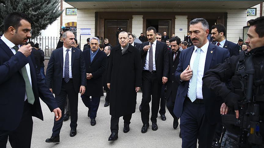 Başbakan Yıldırım ile makam aracıyla camiden ayrılırken bir vatandaş Erdoğan'ın aracını durdurdu. Vatandaşla bir süre konuşan Cumhurbaşkanı Erdoğan, ardından AK Parti Genel Merkezi'ne geçti.