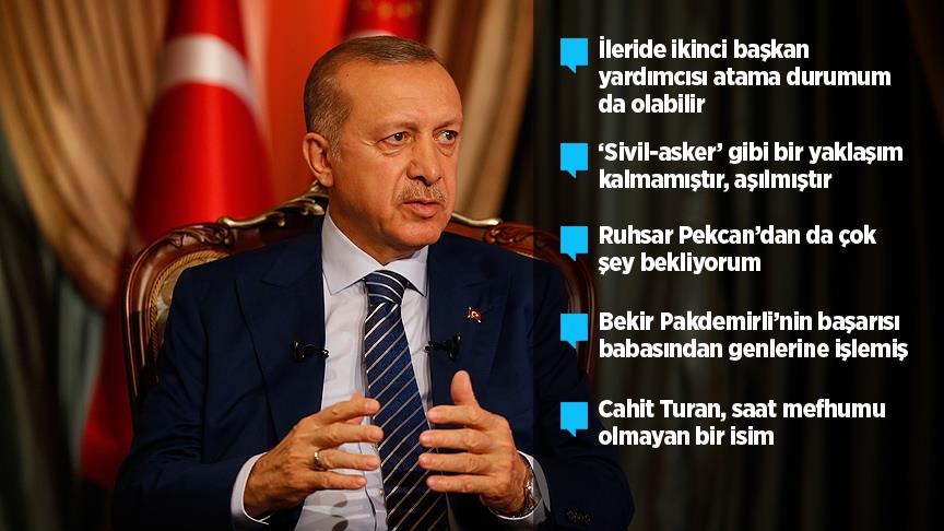 Kabinede iş dünyasından birçok ismin yer aldığının ifade edilmesi üzerine Erdoğan, bu isimlerin dünyayı iyi tanıdıklarını, dünya ile entegre olmakta bir sıkıntılarının bulunmadığını belirtti.