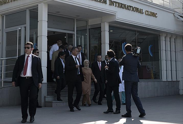Cumhurbaşkanı Recep Tayyip Erdoğan'a, hastaneden çıkışında, vatandaşlar sevgi gösterisinde bulundu. Vatandaşlar, Erdoğan ve eşi Emine Erdoğan'ı cep telefonlarıyla görüntüledi. Erdoğan, vatandaşlarla sohbet etti.