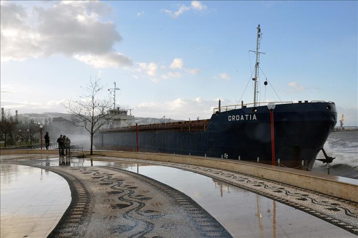 Tanzanya bandıralı, 120 metre uzunluğundaki "Crotia Zanzibar" adlı kuru yük gemisi, limanda demirli bulunduğu sırada fırtına ve akıntı nedeniyle sürüklendi. Karaya oturan, ön ve orta bölümünde hasar oluşan gemide 7 personel bulunduğu öğrenildi.