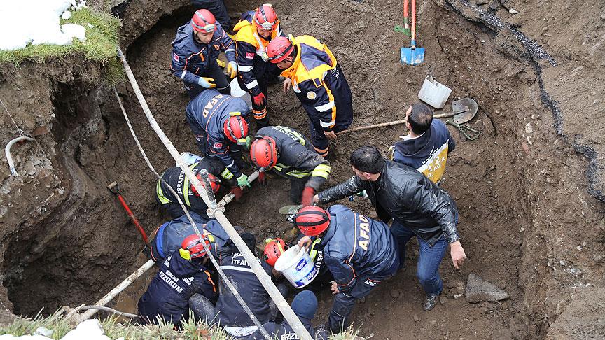 Erzurum'da Palandöken ilçesi Telsizler Mahallesi'ndeki Atlama Kuleleri yakınında yer alan kanalizasyon hattında çalışan belediye işçilerinden Dursun Uzun, alandaki toprak kayması yüzünden boşluğa düştü.