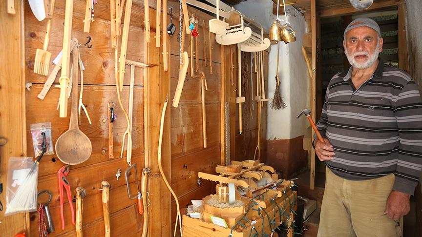 Bayburt'un Aydıntepe ilçesinde 70 yaşındaki Hasan Erkovan, gelecek kuşakların eski tarım aletlerini tanıması için bunların maketlerini yapıyor.