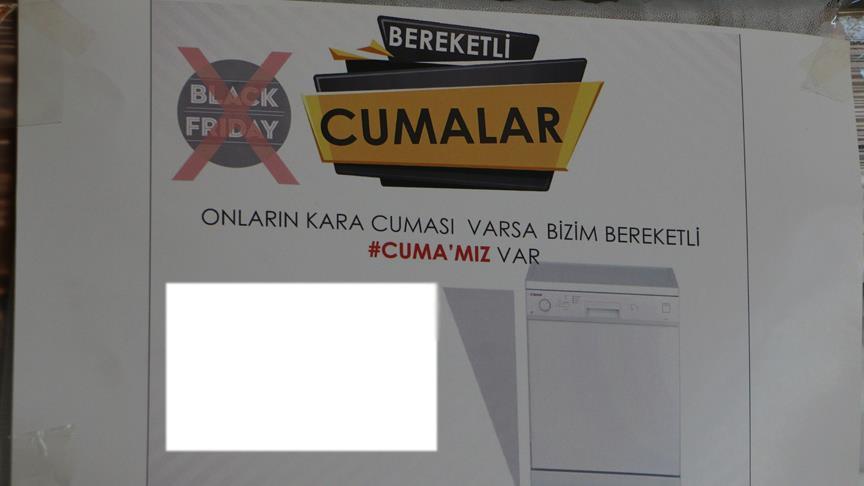 Şanlıurfa'da bir esnaf, ABD'de ve birçok ülkede mağazaların indirim yaptığı gün olan "Black friday (Kara cuma)" tanımlamasına tepki amacıyla "Bereketli Cuma" kampanyası düzenledi ve beyaz eşya fiyatlarında yüzde 40-50 indirime gitti.