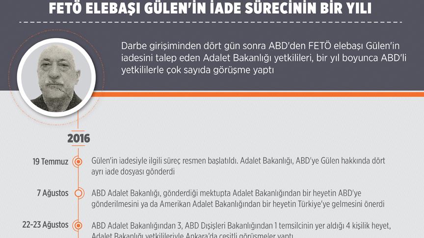 AA muhabirinin derlediği bilgiye göre, FETÖ'nün 15 Temmuz 2016'daki darbe girişiminin ardından Adalet Bakanı Bekir Bozdağ'ın talimatıyla Bakanlık bürokratları örgütün elebaşı Gülen'in iadesi için çalışma başlattı.