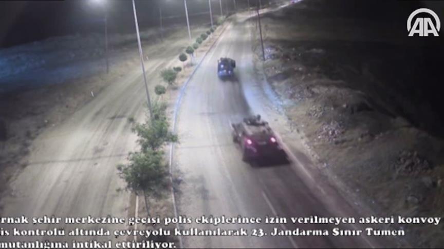 Görüntülerde, Çakırsöğüt Jandarma Komando Tugay Komutanlığından çıkan zırhlı askeri araçların, İl Emniyet Müdürlüğü ekiplerince kent merkezi girişinde TOMA ve zırhlı polis araçlarıyla durdurulduğu görülüyor.