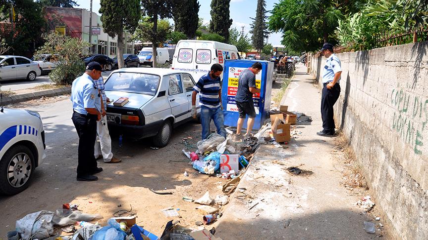 Cemalpaşa Mahallesi Sanayi Sitesi içerisinde geri dönüşüm kutusundaki atık kağıtları toplayan bir kişi, çöp konteynerleri ve geri dönüşüm kutusunda yazarı Fetullah Gülen olan kitaplar buldu.