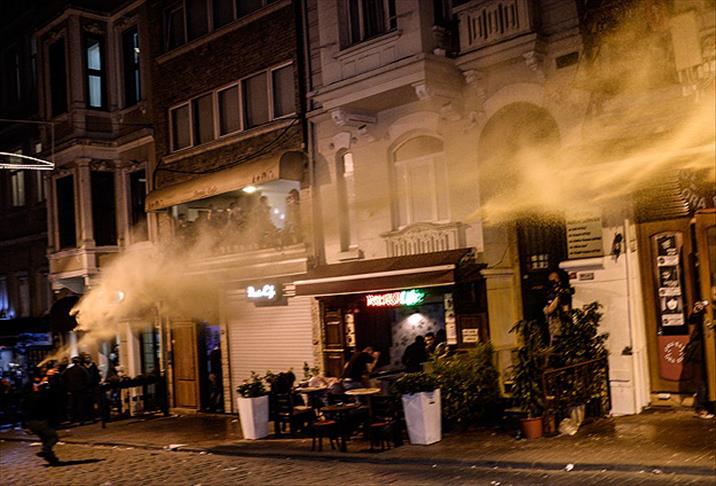 Grubun yürümesine izin vermeyen polis ile bazı kişiler arasında arbede yaşandı. Polisler, kalkanlarıyla ve TOMA'ların da desteğiyle gruptakileri Galatasaray Lisesi'ne doğru uzaklaştırdı. Arbedenin sürmesi üzerine biber gazı ve tazyikli suyla müdahale eden polis, gruptan bazı kişileri gözaltına aldı. Eylemciler dağılarak ara sokaklara kaçtı.