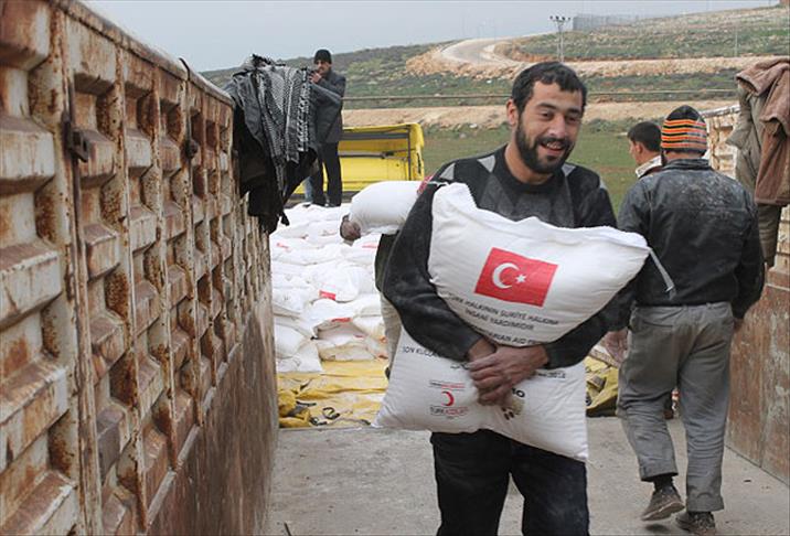 Suriyelilerin, yardımları sevinçle karşıladığı gözlendi.