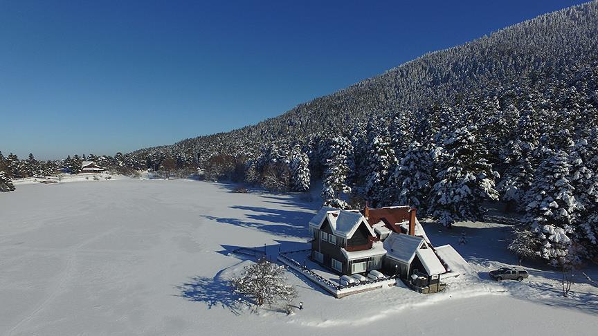 Dört mevsim ayrı bir güzelliğe bürünen Gölcük Tabiat Parkı, beyaz örtüsüyle misafirlerini büyülüyor.