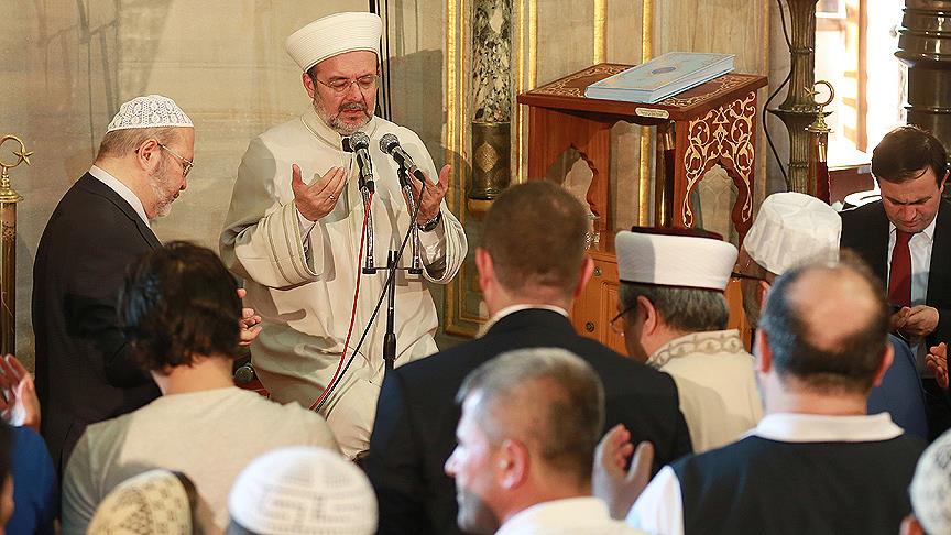 Görmez, hutbede okuduğu dua sonrası İstanbullularla bayramlaştı.
