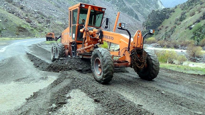 Trafiğin bir süredir tek şeritle sağlandığı Hakkari-Çukurca karayolunda ekipler, güvenlik güçlerince alınan önlemlerin ardından, hendek ve saldırılar sonucu oluşan çukurları doldurdu.